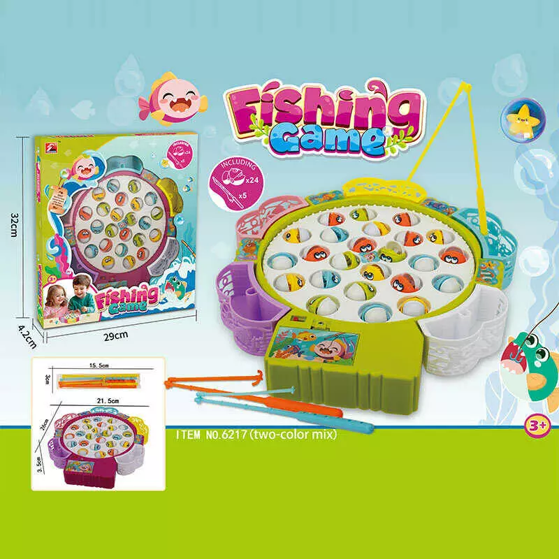 Риболовля 6217 (48/2) діаметр - 24 см, автоматичне обертання, музика, 24 рибки, 5 вудочок з гачком, 5 кошиків, рухомі елементи, в коробці