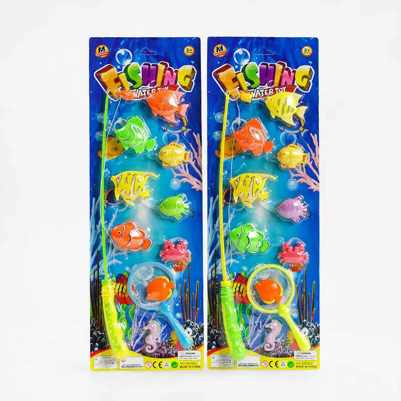 Риболовля 882-7 (144) 2 кольори, 9 рибок, вудка, сачок, на листі