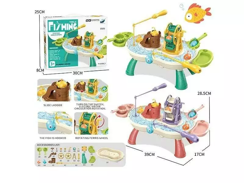 Риболовля QY 9995 (36) 2 кольори, платформа трансформується в столик, циркуляція води, механічне колесо, рибки з гачками, вудки, аксесуари, в коробці