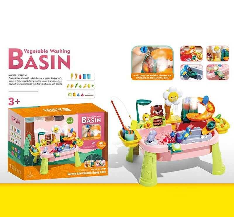Риболовля WD 814 A (12) 59х33х42 см, 40 елементів, автоматична подача води, вудочка, рибки, спуски, світло, парогенерація, на батарейках, в коробці