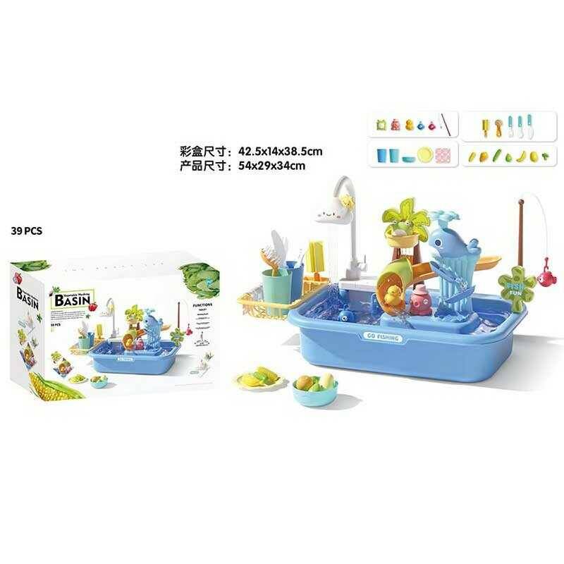 Риболовля+мийка WD 810 C (18/2) 39 елементів, кран, автоматична подача води, вудочка, рибки, овочі, щітка, гірки, в коробці
