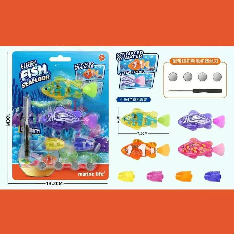 Роборибка CY 03 (480/2) 2 види, 2 штуки у наборі, на батарейках, підсвічування, рухає хвостом, 8 см, на листі