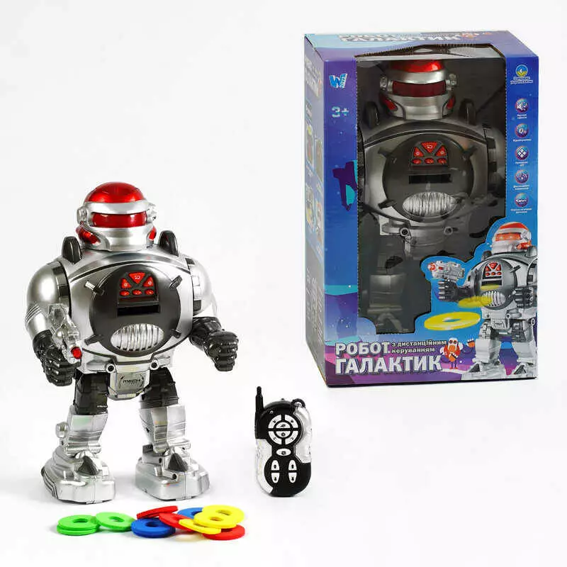 Робот Галактик на радіокеруванні 18122 (18) "WToys", ОЗВУЧ. УКР. МОВОЮ, світло, пісні, вікторина, стріляє дисками, історії, від батарейок, в коробці