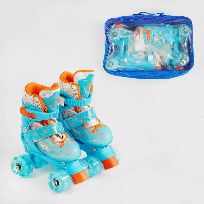 Ролики 12004-XS розмір 27-30 (6) колір СИНІЙ, колеса PU, КОЛЕСА ЗІ СВІТЛОМ, устілка - 15-17 см, d колес – 4,5 см, в сумці