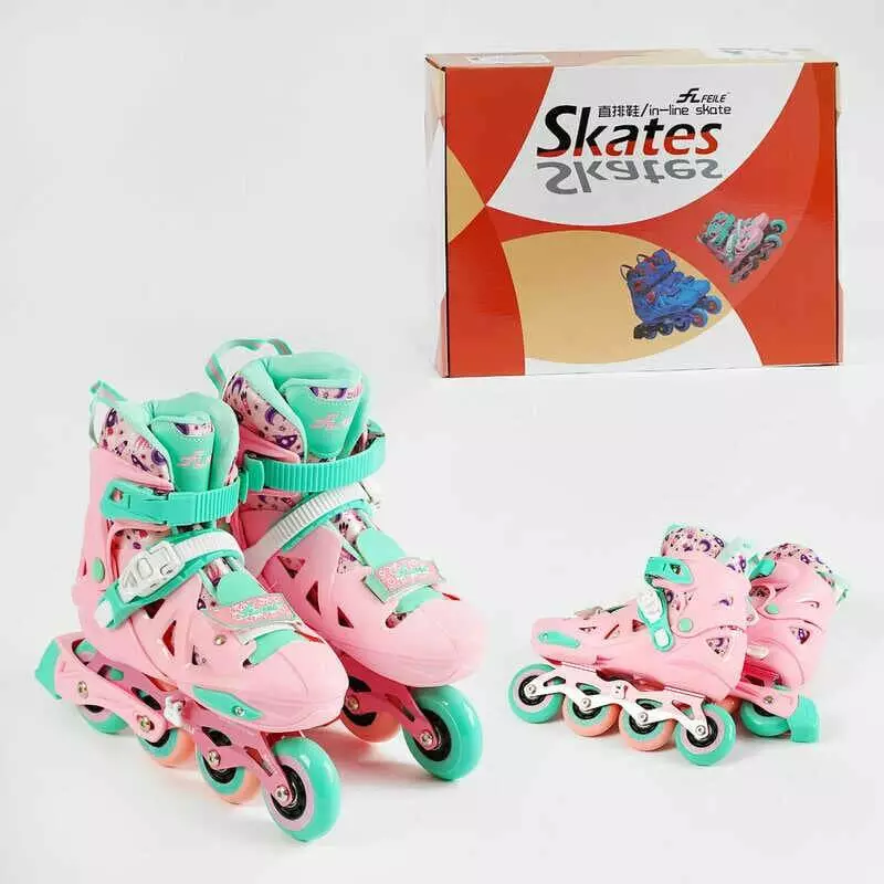 Ролики 17107-М розмір 34-37 (6) колір РОЖЕВИЙ, колеса PU, ПЕРЕДНЄ КОЛЕСО СВІТЛО, d колес – 6.5 см, в коробці
