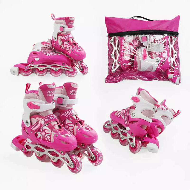 Ролики 24010-S /розмір 29-33/ колір – РОЖЕВИЙ (6) колеса PVC, устілка 16-19 см, ПЕРЕДНЄ КОЛЕСО СВІТЛО, d – 6.5 см, в сумці