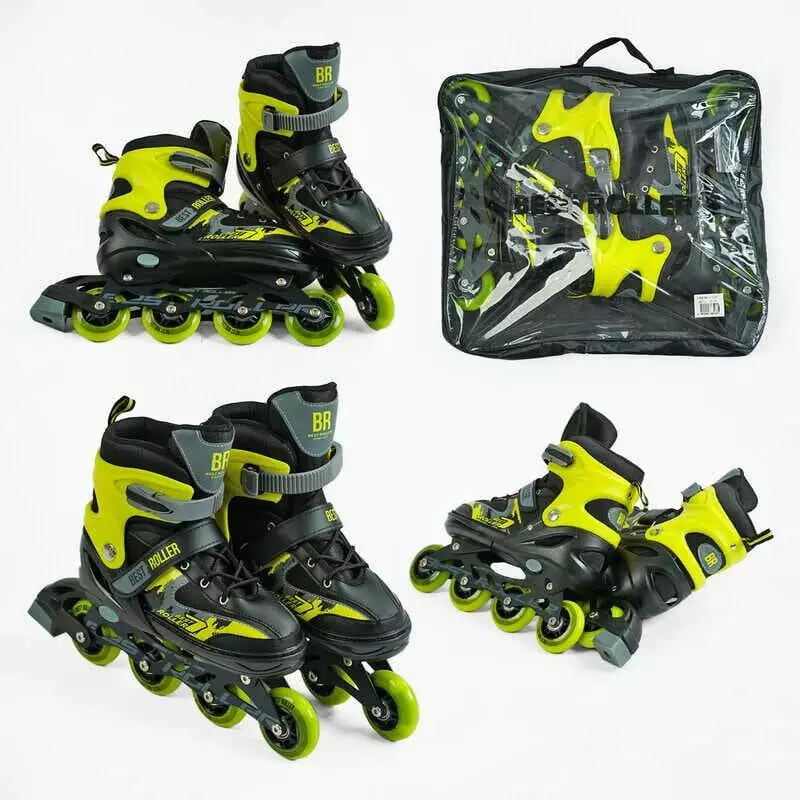 Ролики 27300-М Best Roller /розмір 34-37/ колір – ЖОВТИЙ (6) колеса PU, ПЕРЕДНЄ КОЛЕСО СВІТЛО, устілка 21.5-24 см, d колес – 7 см, в сумці