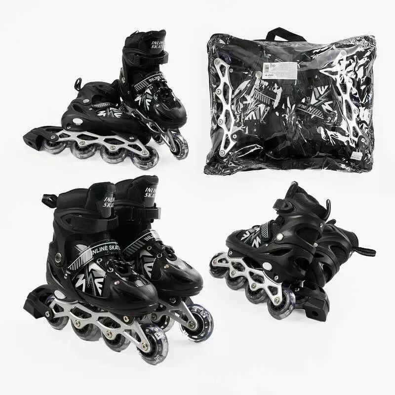 Ролики 30627-М /розмір 34-38/ колір – ЧОРНИЙ (6) колеса PVC, устілка 21-24 см, ПЕРЕДНЄ КОЛЕСО СВІТЛО, d – 6.5 см, в сумці