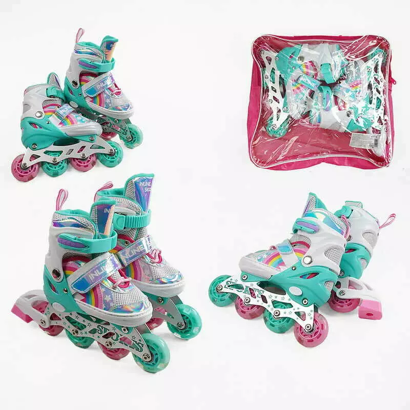 Ролики 3091-203 М розмір 34-38 (6) колір Бірюзовий, устілка 22-24 см, колеса PU, d коліс – 6 см, підсвічування коліс, в сумці