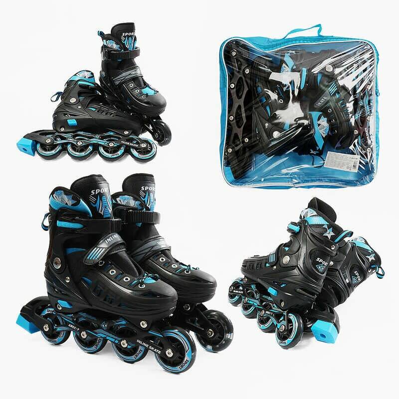 Ролики 532-19 L /розмір 39-43/ колір – Синій (6) колеса PU, ПЕРЕДНЄ КОЛЕСО СВІТЛО, d – 6.5 см, в сумці