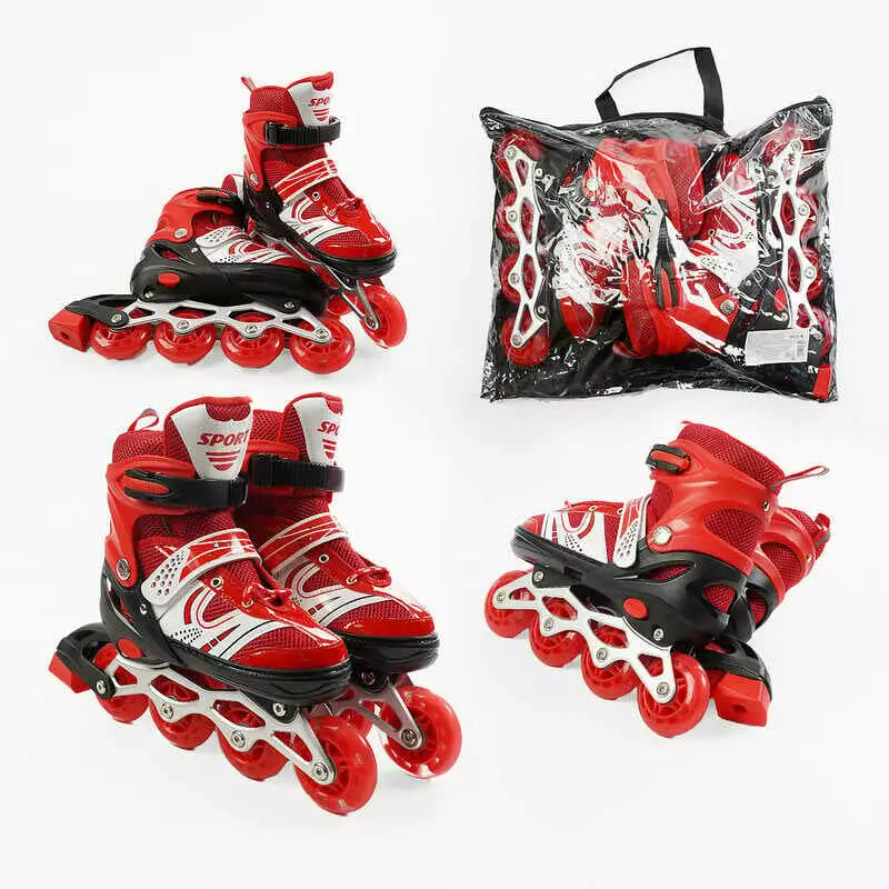 Ролики 54622-М /розмір 34-38/ колір – ЧЕРВОНИЙ (6) колеса PU, устілка 21-24 см, ПЕРЕДНЄ КОЛЕСО СВІТЛО, d – 6.5 см, в сумці