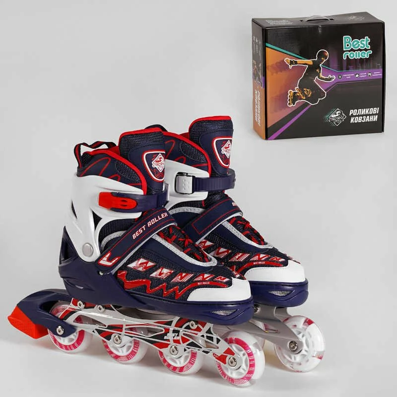 Ролики 56019-S Best Roller /розмір 30-33/ (6) СИНІЙ, колеса PU, ПЕРЕДНЄ КОЛЕСО ЗІ СВІТЛОМ, устілка - 17-19 см, d коліс – 6.5 см, в коробці