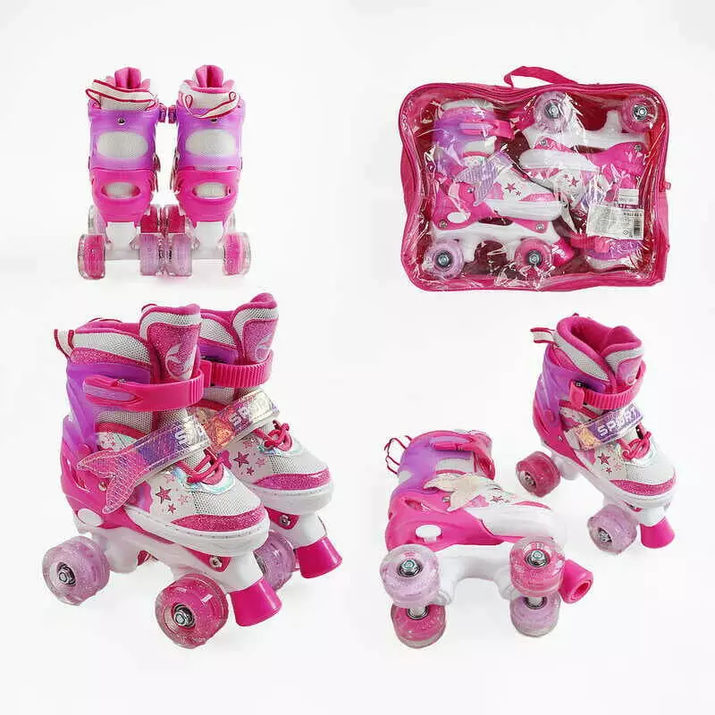 Ролики 60210-90 М розмір 34-38 (6) колір Рожевий, устілка 21-24 см, колеса PU, КОЛЕСА ЗІ СВІТЛОМ, d коліс – 4,5 см, в сумці