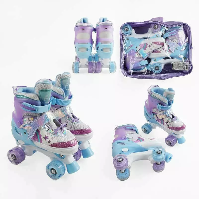 Ролики 67011-31 М розмір 34-38 (6) колір Фіолетовий, устілка 21-24 см, колеса PU, КОЛЕСА ЗІ СВІТЛОМ, d коліс – 4,5 см, в сумці