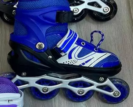 Ролики 69701-L /розмір 39-43/ колір – СИНІЙ (6) колеса PU, устілка 24-27 см, ПЕРЕДНЄ КОЛЕСО СВІТЛО, d – 6.5 см, в сумці