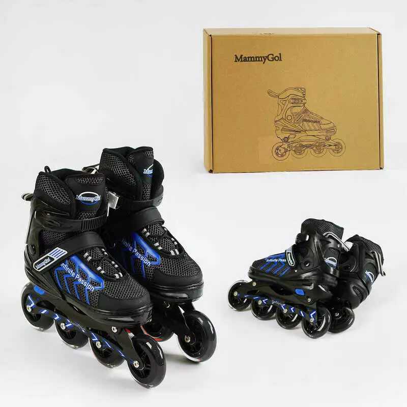 Ролики 90422-L розмір 39-42 (6) колір СИНІЙ, колеса PU, устілка 23.5-26 см, d – 9 см, алюмінієва рама, підшипник ABEC-7, в сумці