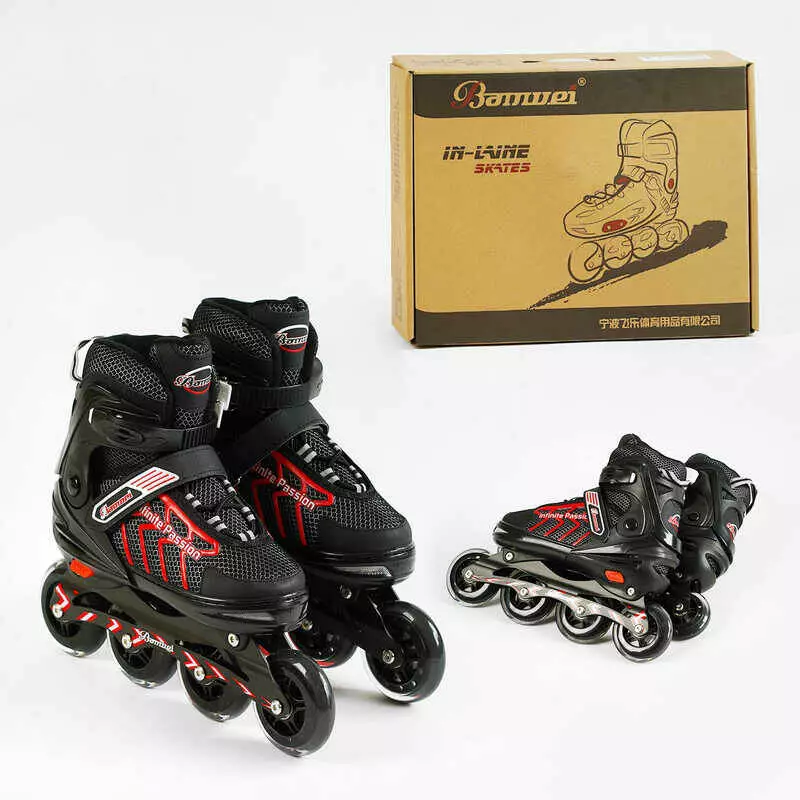 Ролики 90633-L розмір 39-42 (6) колір ЧЕРВОНИЙ, колеса PU, устілка 23.5-26 см, d – 9 см, алюмінієва рама, підшипник ABEC-7, в сумці