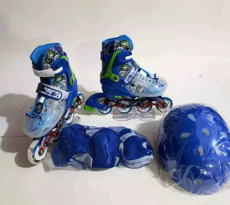 Ролики 9620-11 М розмір 34-38 (6) колір СИНІЙ, колеса PU, d коліс – 6 см, устілка 19 см, підсвічування коліс, шолом, захист, в коробці