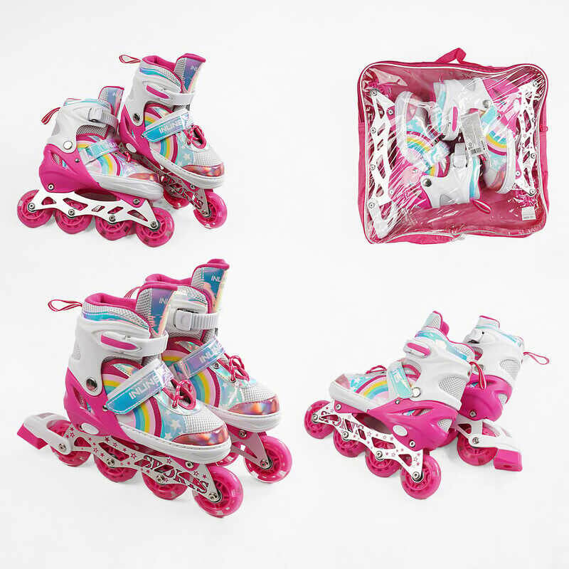 Ролики J-4770-5 М розмір 34-38 (6) колір Рожевий, колеса PU, d колес – 6 см, підсвічування коліс, в сумці