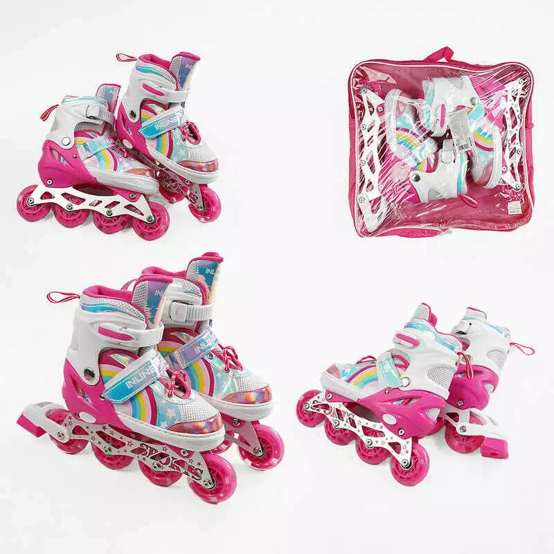 Ролики J-4770-5 М розмір 34-38 (6) колір Рожевий, устілка 22-24 см, колеса PU, d коліс – 6 см, підсвічування коліс, в сумці