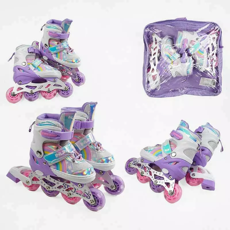 Ролики J-7714-8 S розмір 29-33 (6) колір Фіолетовий, устілка 18-21 см, колеса PU, d коліс – 6 см, підсвічування коліс, в сумці