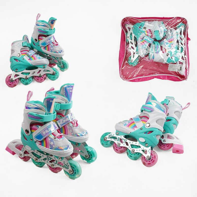 Ролики J-9730-6 S розмір 29-33 (6) колір Бірюзовий, колеса PU, d колес – 6 см, підсвічування коліс, в сумці