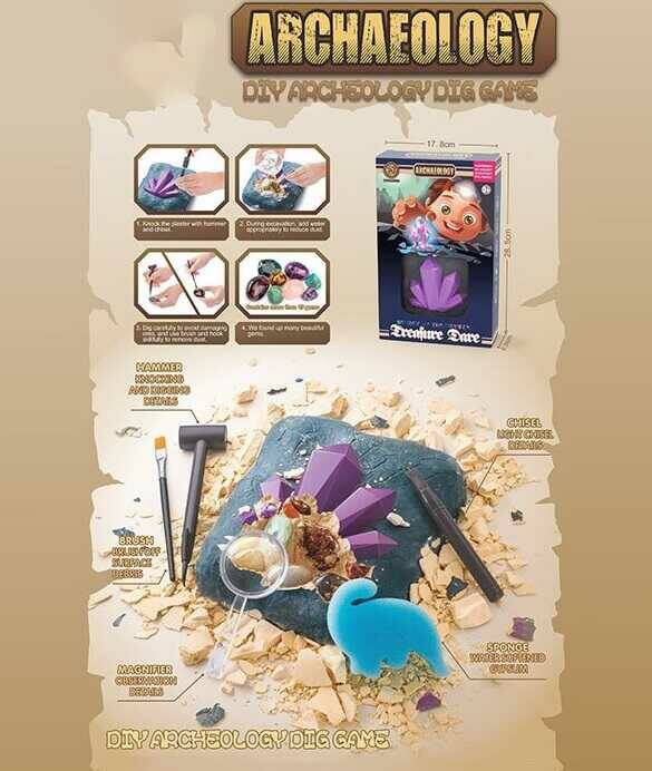 Розкопки 129-63 (48/2) гіпсовий блок, кристали, інструменти, в коробці