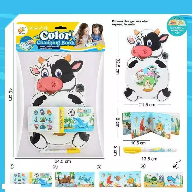 Розмальовка водою 2022-62 (176/2) “Корівка”, ручка-пензлик, м’яка книжечка з пискавкою, у пакеті