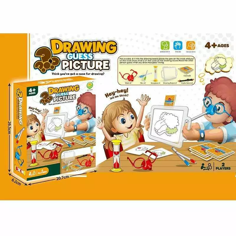 Розважальна гра 1210 (84/2) “Малюй носом”, 2 окулярів, дощечка для малювання, 8 маркерів “пиши-витирай”, пісочний годинник, картки, в коробці