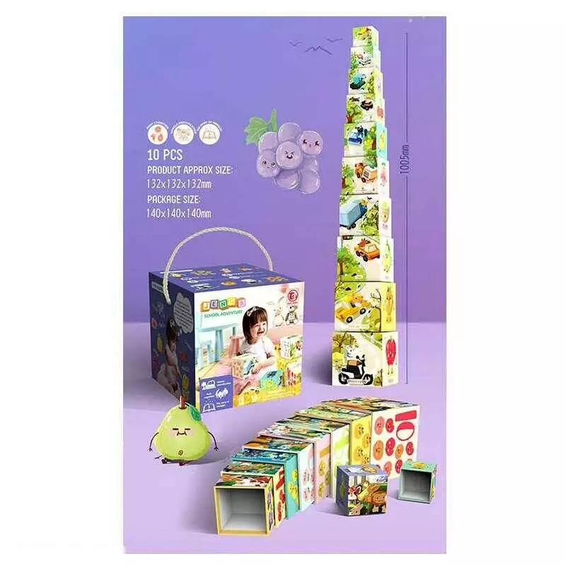 Розвивальна гра 88631 (60/2) кубики, пірамідка, цифри, фрукти, професії, написи англійською мовою, в коробці