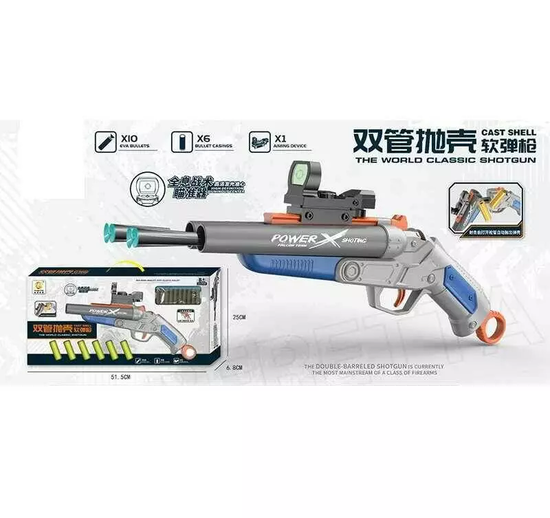 Рушниця 832 (24) механічний принцип роботи, довжина 38 см, 2 дула, 10 м’яких патронів, 6 гільз, приціл, в коробці