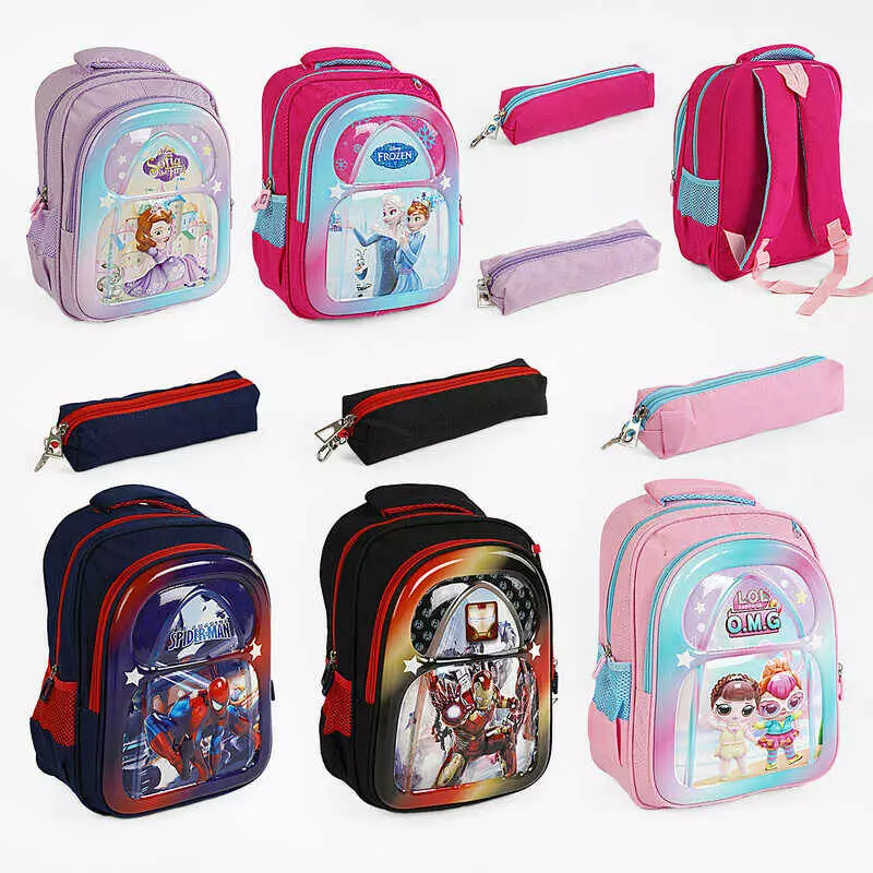 Рюкзак C 65138 (30) пластикова вставка, пенал, регульовані лямки, 2 відділення, в пакеті, ВИДАЄТЬСЯ ТІЛЬКИ МІКС ВИДІВ