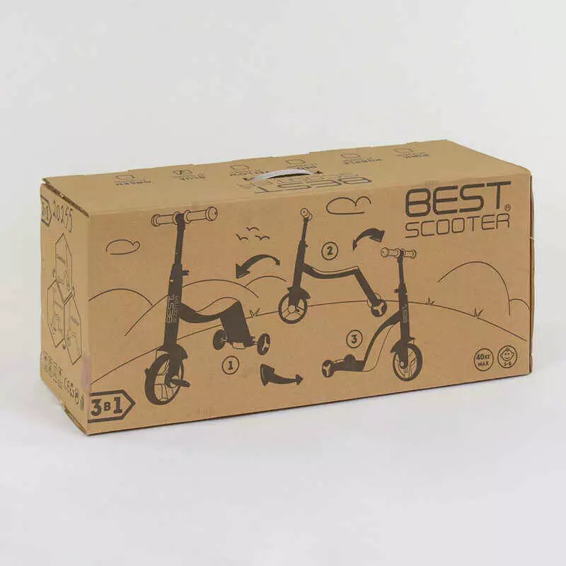 Самокат 3в1 JT 10181 (1) Best Scooter, самокат-велобег-велосипед, свет, 8 мелодий, колёса PU, переднее колесо d=20см, задние d=11см