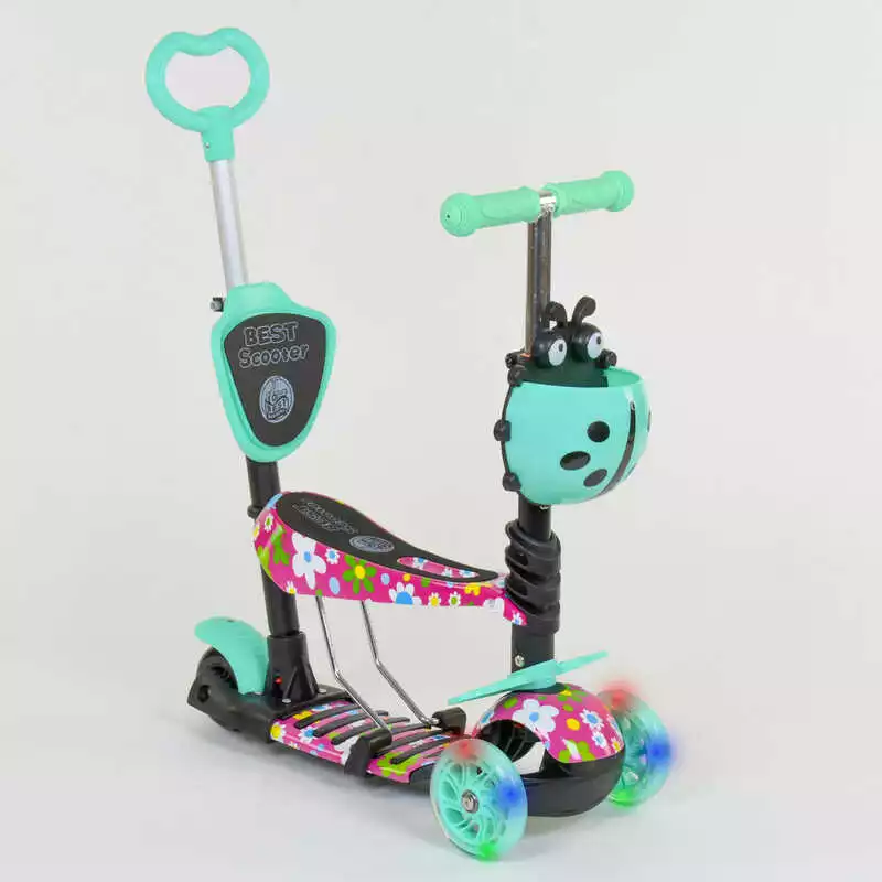 Самокат 5в1 43702 (1) Best Scooter, АБСТРАКЦИЯ, PU колеса, ПОДСВЕТКА КОЛЕС, в коробке