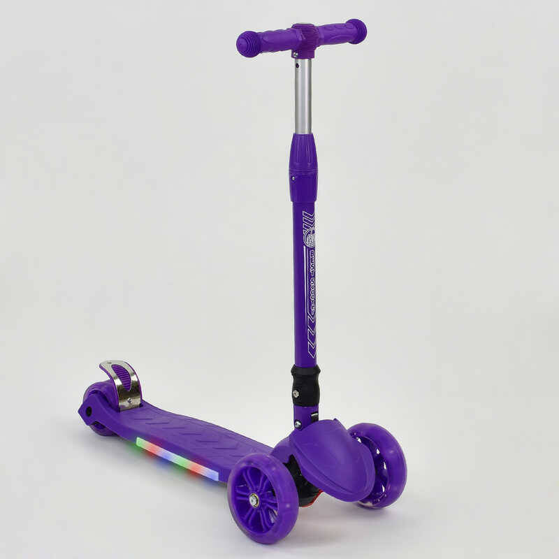 Самокат А 24734/ 881-4 L (8) ФИОЛЕТОВЫЙ, складной руль, d передних колёс14 см, d задних колёс 8см, колёса светятся + ПОДСВЕТКА ПЛАТФОРМЫ, в пакеті