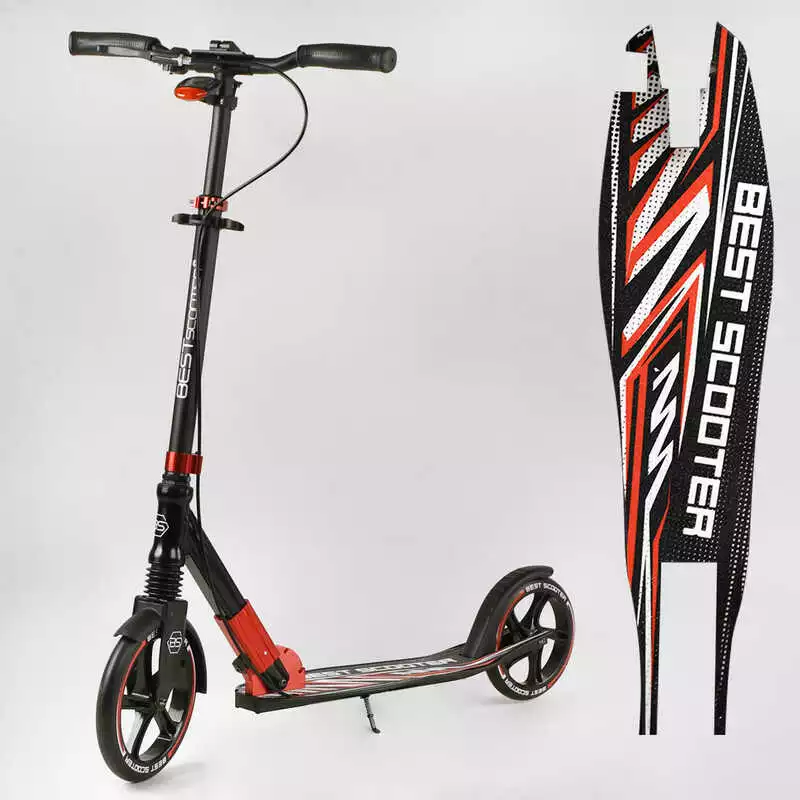 Самокат алюминиевый "Best Scooter" 10304 (2) колеса PU, ФАРА, зажим руля, d передних колес - 230мм, d задних колес 200мм, 1 амортизатор передний