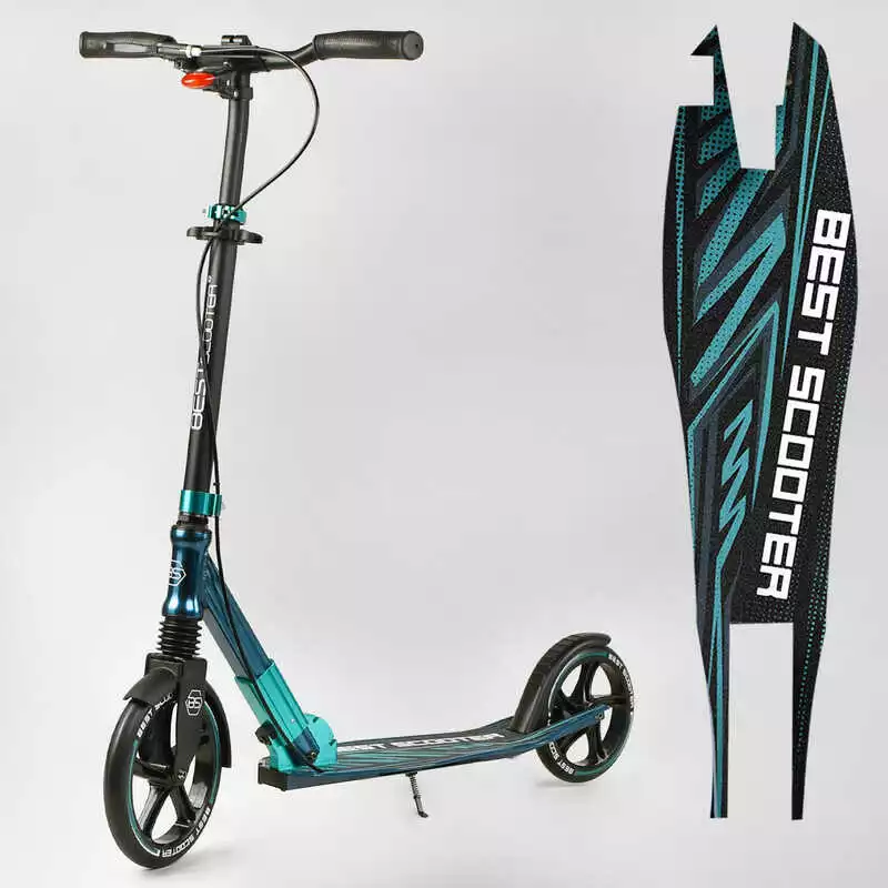 Самокат алюминиевый "Best Scooter" 43685 (2) колеса PU, ФАРА, зажим руля, d передних колес - 230мм, d задних колес 200мм, 1 амортизатор передний