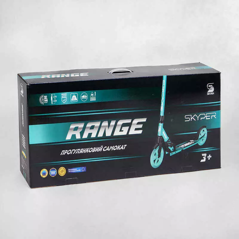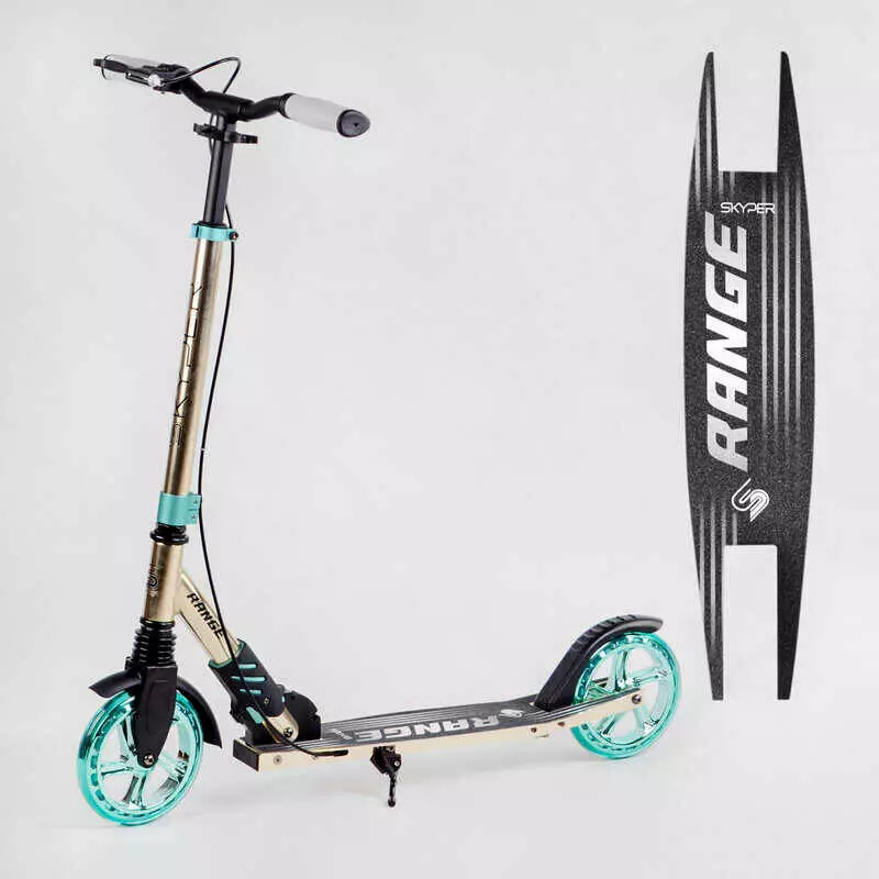 Самокат алюминиевый "Skyper" S-52066 (2) "Range", ручной тормоз, колеса PU 180мм, 1 амортизатор передний, анодированная покраска, в коробке