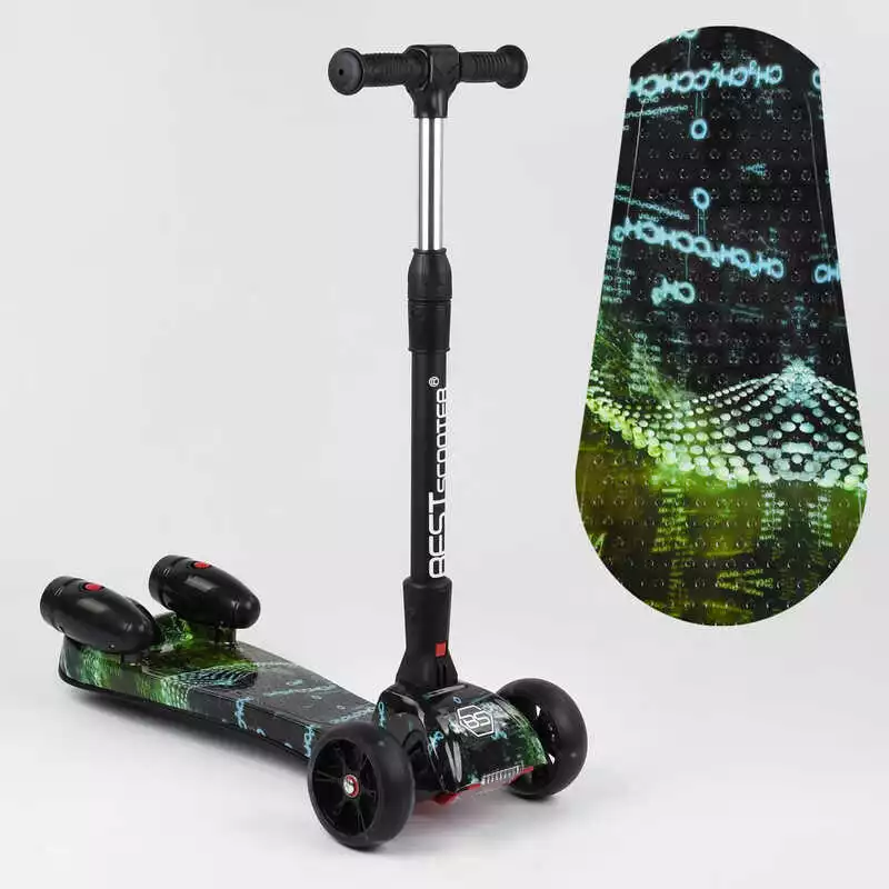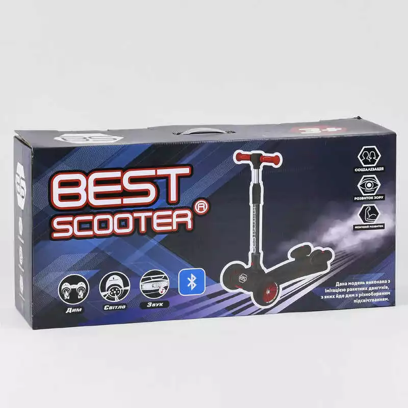Самокат "Best Scooter" MAXI" 65628 с парогенератором (4) МУЗЫКА, ДЫМ, ТУРБИНЫ, пластмассовый, колеса PU 120х40мм, складной алюминиевый руль, в коробке