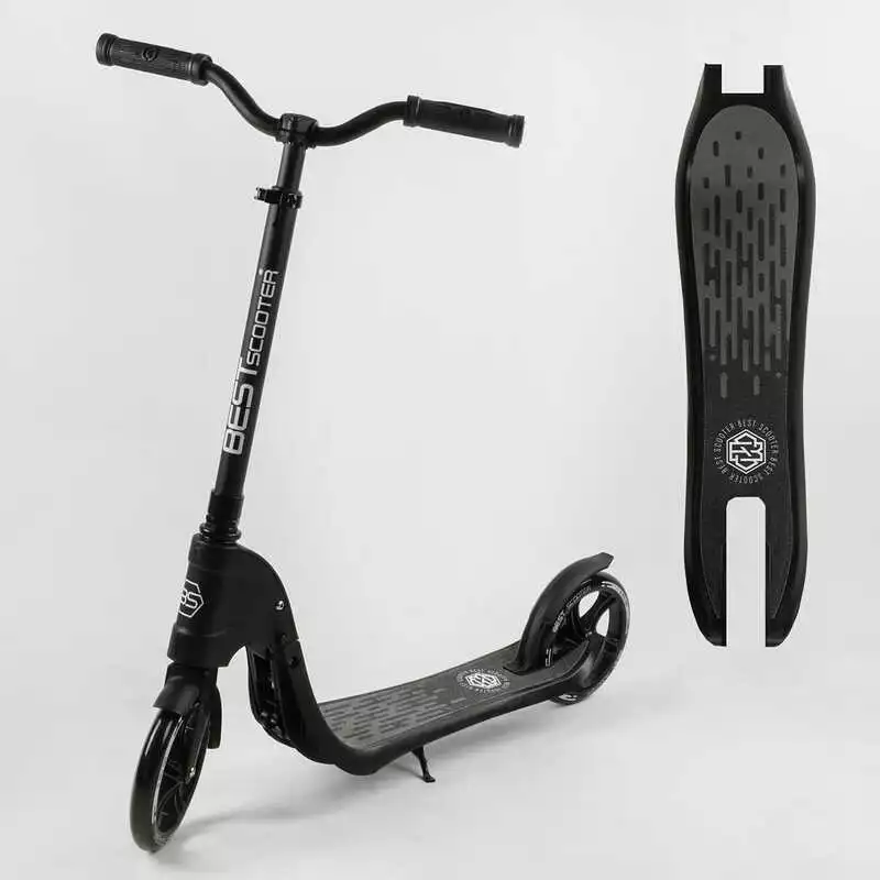Самокат двухколесный 74077 "Best Scooter" (2) цвет ЧЕРНЫЙ, колеса PU - 20 см, широкий велосипедный руль, новый зажим руля, в коробке