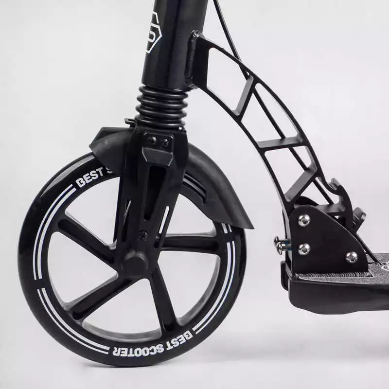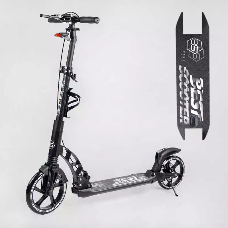 Самокат двухколесный "Best Scooter" 24215-B (2) ФАРА, переднее колесо PU 230 мм, заднее колесо 200мм, 2 амортизатора, дисковый тормоз, зажим руля