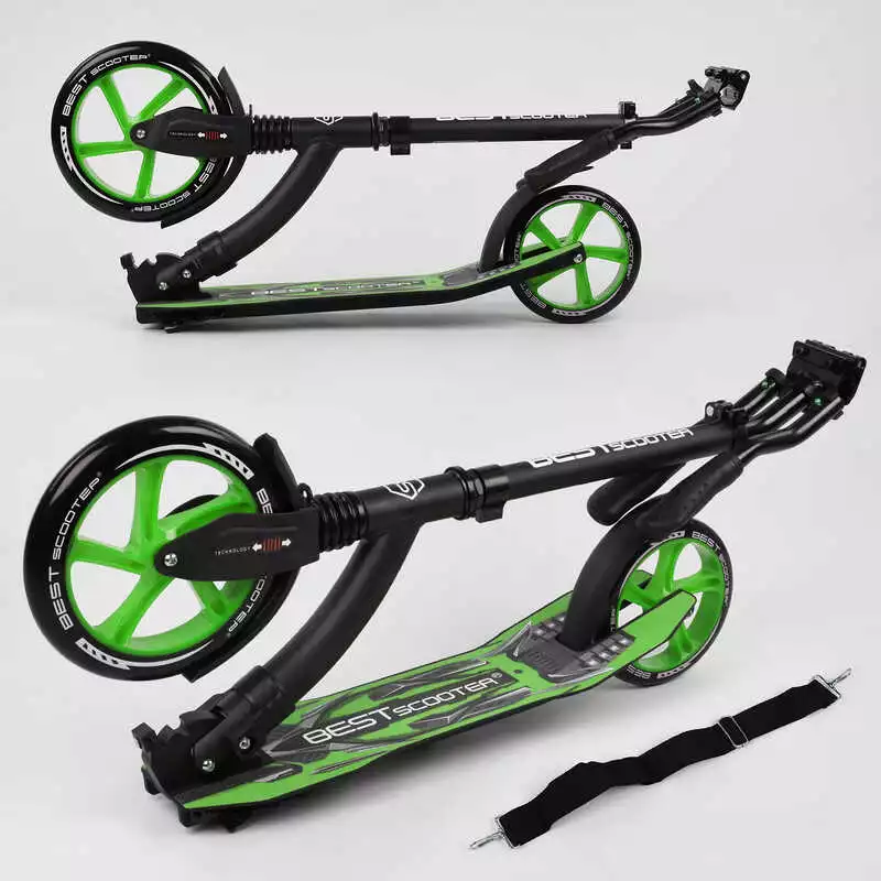 Самокат двухколесный Best Scooter 52266 (4) колеса PU - переднее 23 см, заднее - 20 см, 1 амортизатор, широкий руль, зажим руля, в коробке