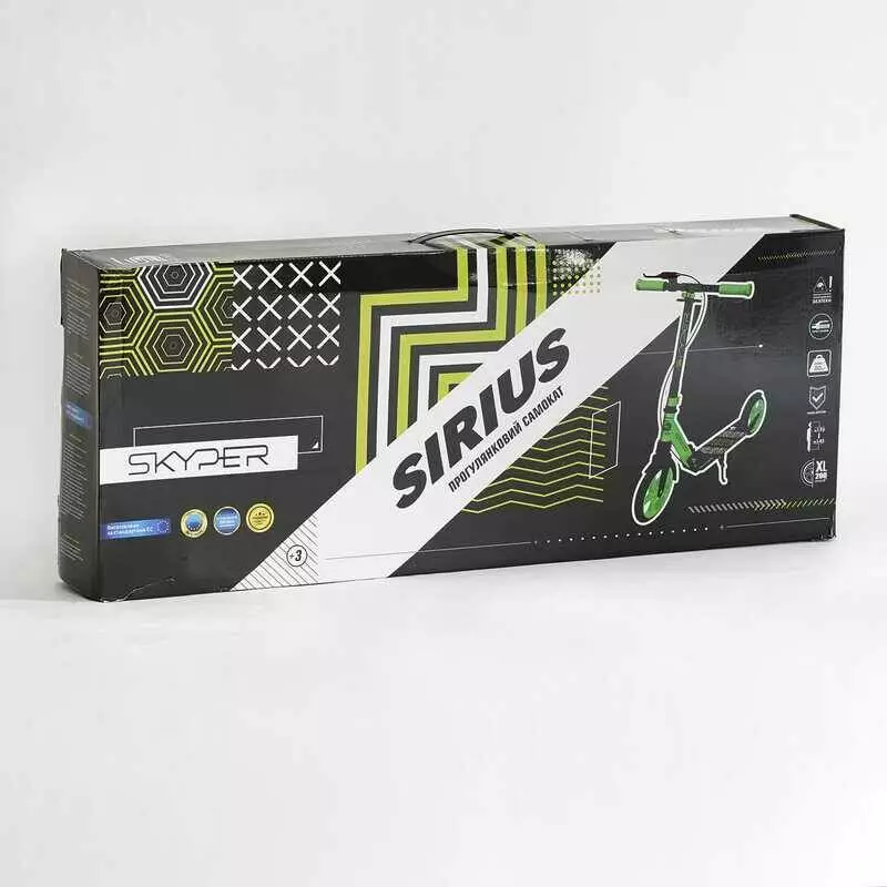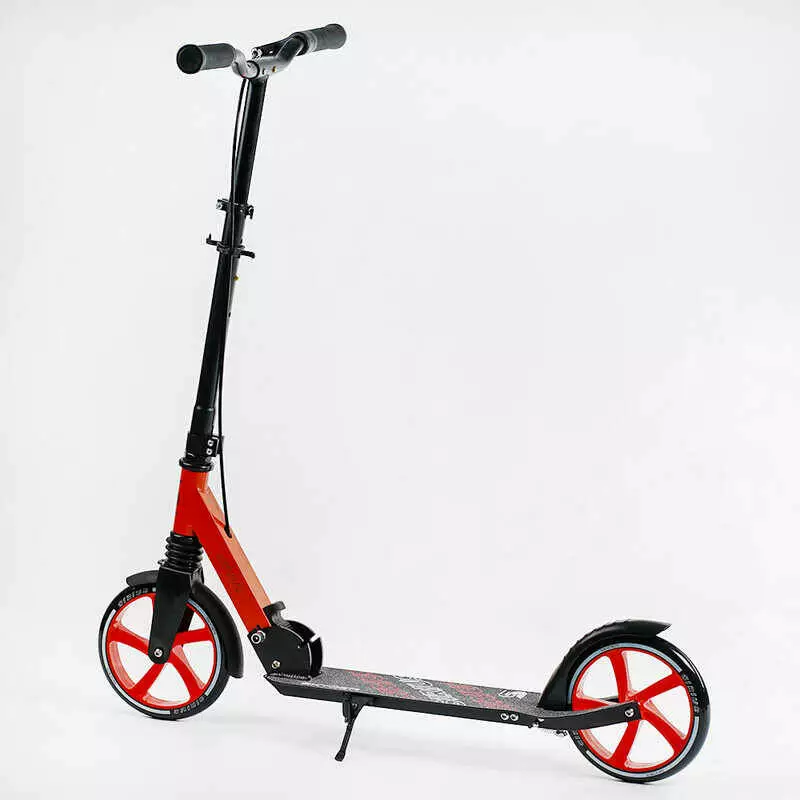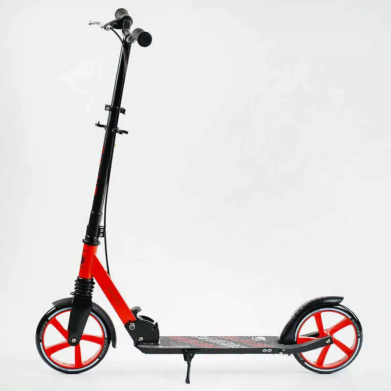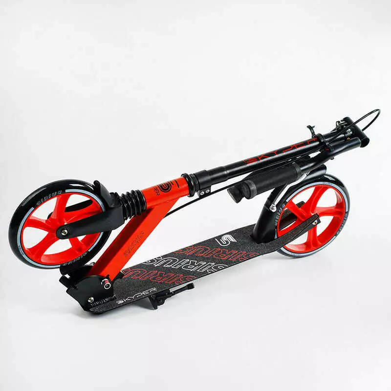 Самокат двухколесный S-16312 "Skyper" (4) "Sirius", черно-красный, колеса PU 200 мм, 1 аммортизатор, ручной тормоз, в коробке