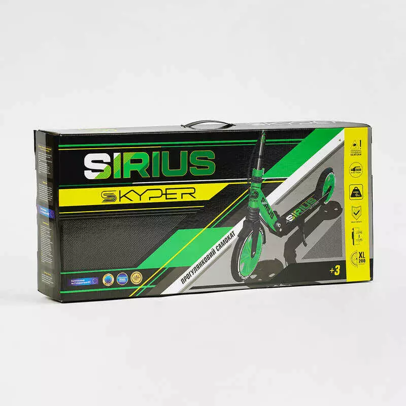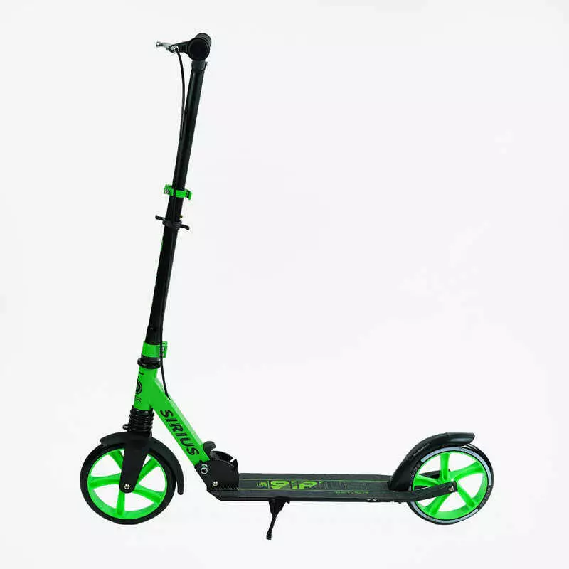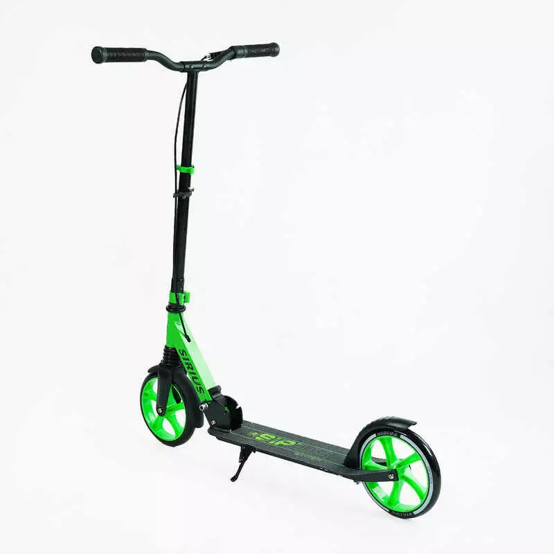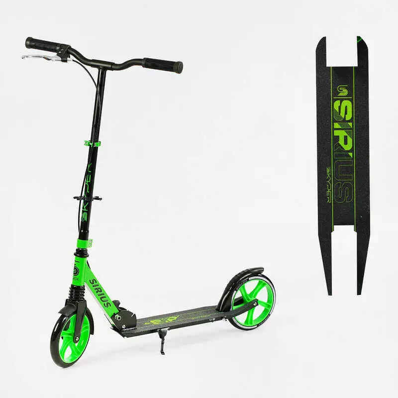 Самокат двухколесный "Skyper" S - 95019 (4) "Sirius", салатово-черный, колеса PU 200 мм, 1 аммортизатор, ручной тормоз, в коробке