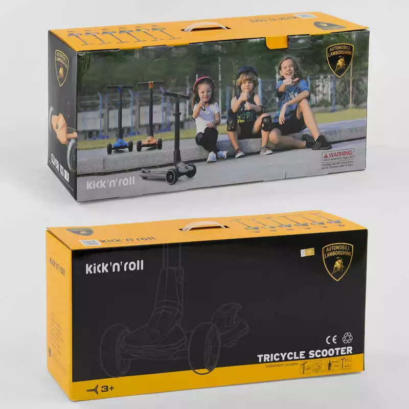 Самокат Lamborghini трехколесный LB - 10200 (4) складной алюминиевый руль, колеса PU со светом, в коробке
