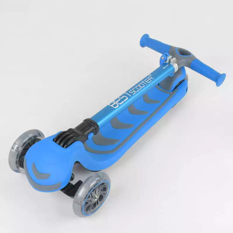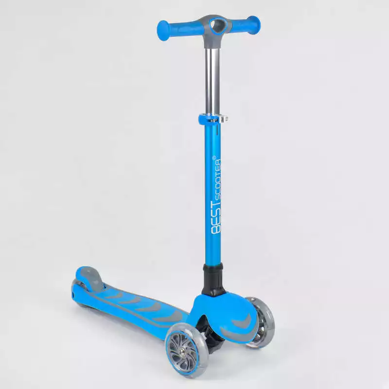 Самокат трехколесный 38603 (4) Best Scooter, ГОЛУБОЙ, складной алюминиевый руль, 4 колеса PU со светом, d=12 см