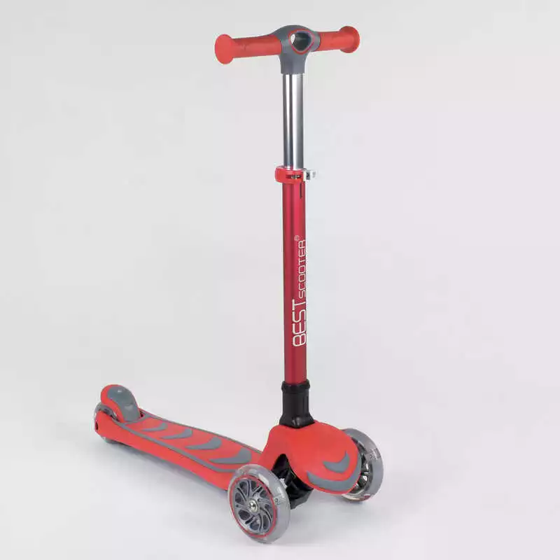 Самокат трехколесный 92606 (4) Best Scooter, КРАСНЫЙ, складной алюминиевый руль, 4 колеса PU со светом, d=12 см