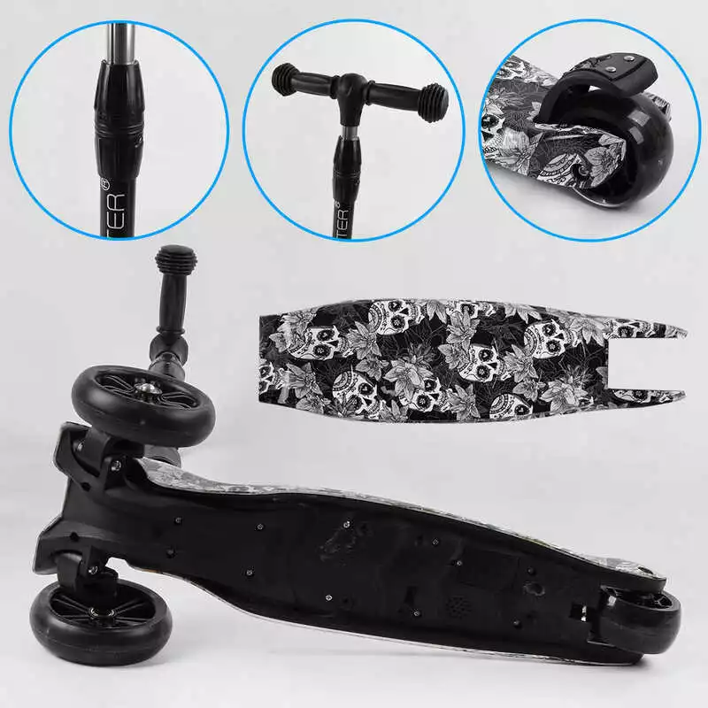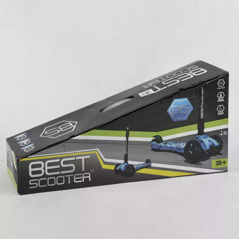 Самокат трехколесный Best Scooter 65-878 MAXI (6) складной алюминиевый руль, 3 колеса PU со светом, переднее 130х35 мм, заднее 80х45 мм, в коробке