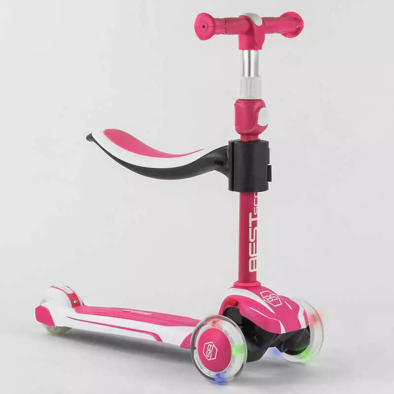 Самокат трехколесный Best Scooter JS-41008/63204 (4) с сидением, алюминиевый руль, 3 колеса PU со светом, d=12 см