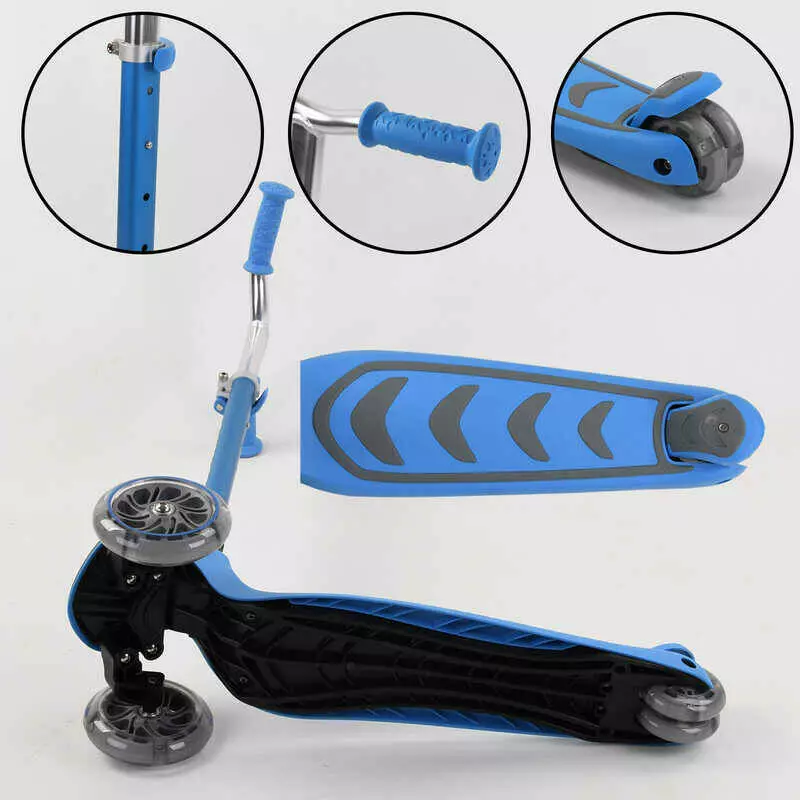Самокат трехколесный Y-00180 (4) Best Scooter, ГОЛУБОЙ, складной алюминиевый руль, 4 колеса PU со светом, d=12 см